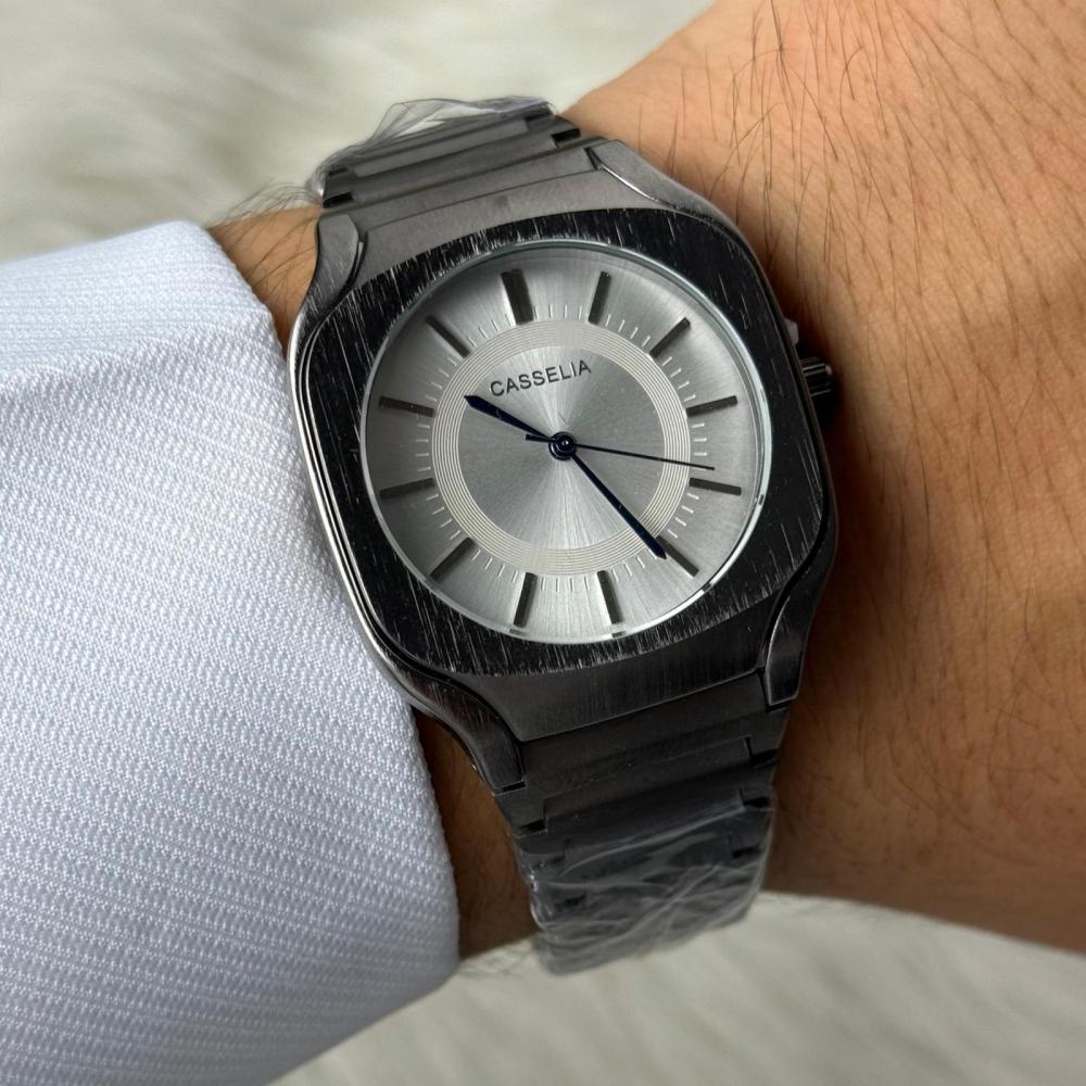 - تتميز هذه الساعة بقرص ساعة مربع الشكل وحزام فضي بسوار ، جودة عالية.